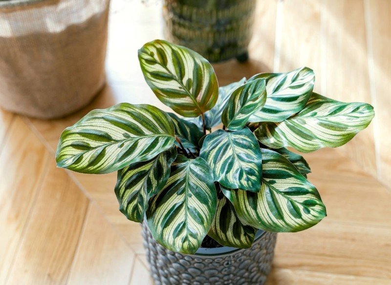 2. Calatea Con foglie multicolori e motivi intriganti, la Calatea aggiunge un tocco di fascino tropicale agli interni. Ama l’ombra e l’umidità, quindi posizionarla lontano da fonti di calore diretto.