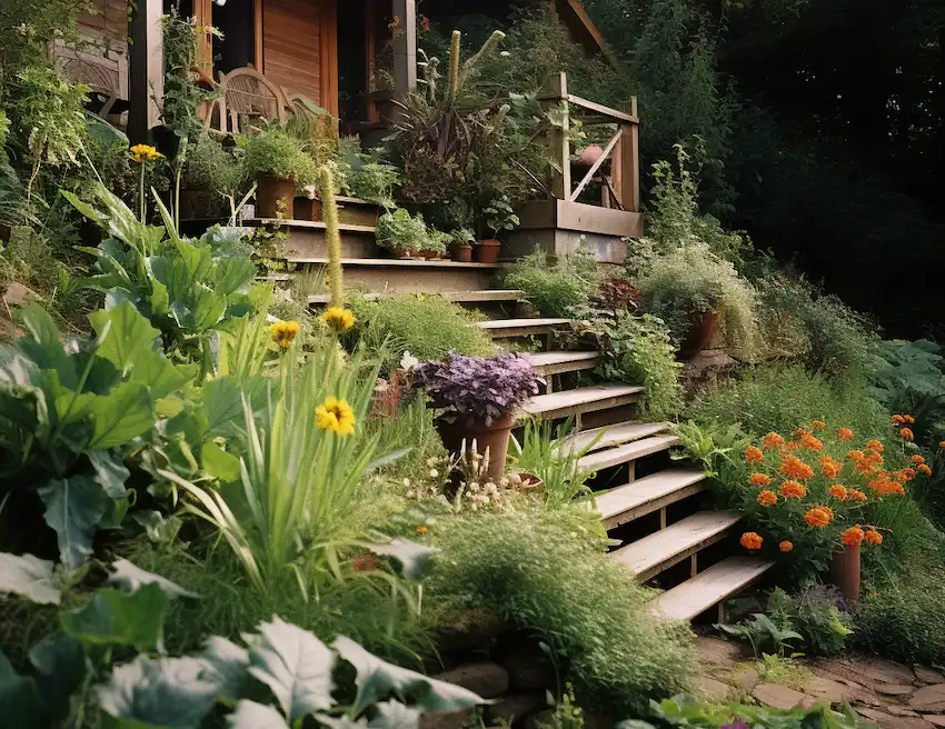 Il terrazzamento converte un pendio in una serie di spazi di coltivazione pianeggianti, riducendo l’erosione del suolo e facilitando la manutenzione del giardino.