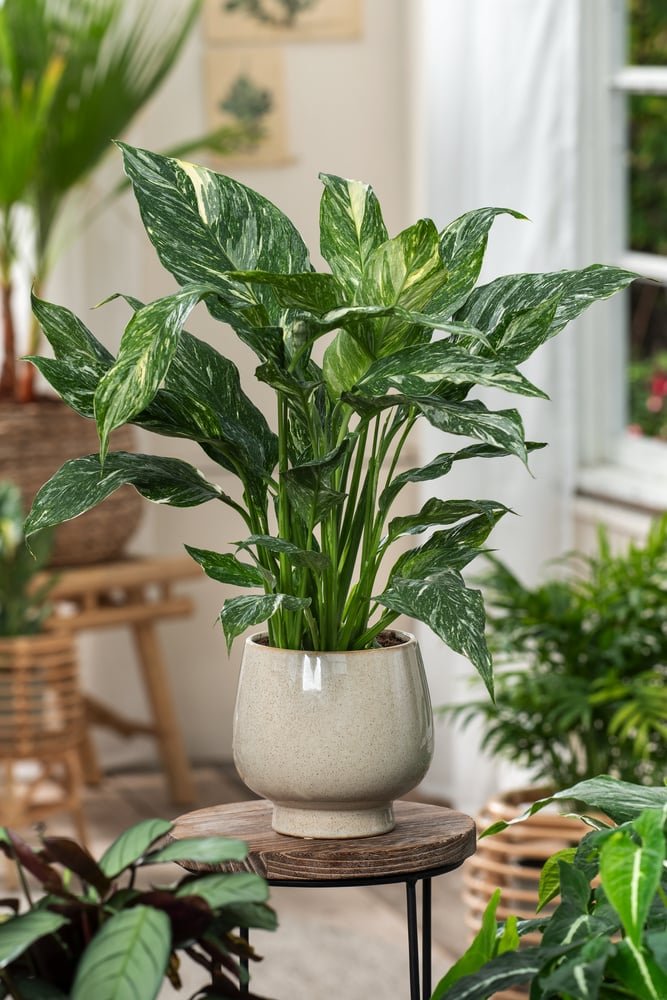 La Spathiphyllum, una pianta tropicale originaria dell’America meridionale e centrale, si presenta in molteplici varietà, distinguendosi per dimensioni, forma e colore delle foglie e dei fiori. Tra queste, spicca la varietà Diamond Variegata, una gioia per gli occhi con le sue foglie maculate, che ne fanno una vera e propria opera d’arte naturale.