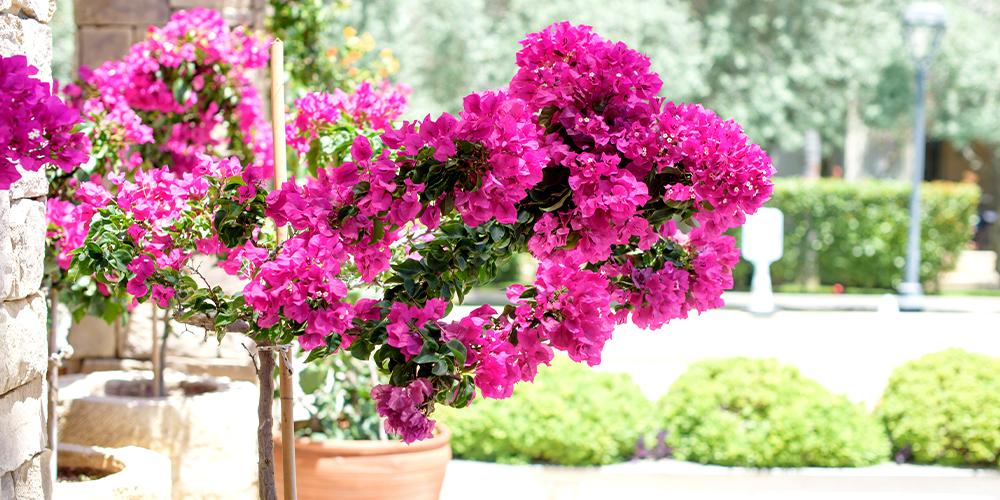 La potatura è importante per incoraggiare una fioritura rigogliosa e mantenere la bouganville in forma compatta e ben curata. Rimuovere i rami morti o danneggiati e tagliare leggermente i rami più lunghi per promuovere una crescita densa e abbondante.