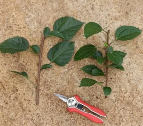 Selezione della Talea Per iniziare il processo di propagazione, è essenziale selezionare una talea sana e robusta da una pianta di ibisco matura. Questa talea dovrebbe essere priva di fiori o boccioli e ideale di circa 10 centimetri di altezza. Taglia la talea con un angolo di 45 gradi utilizzando delle cesoie pulite e affilate, evitando il rischio di danneggiare la pianta madre. Rimuovi le foglie dalla metà inferiore della talea, lasciandone solo alcune sulla parte superiore per favorire la fotosintesi.