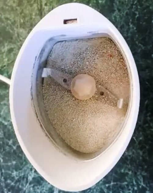 3. Schiaccia e Macina i Gusci d’uovo Schiaccia i gusci d’uovo in pezzetti più piccoli e macinali fino a ottenere una polvere finissima utilizzando un macinacaffè o un mattarello.