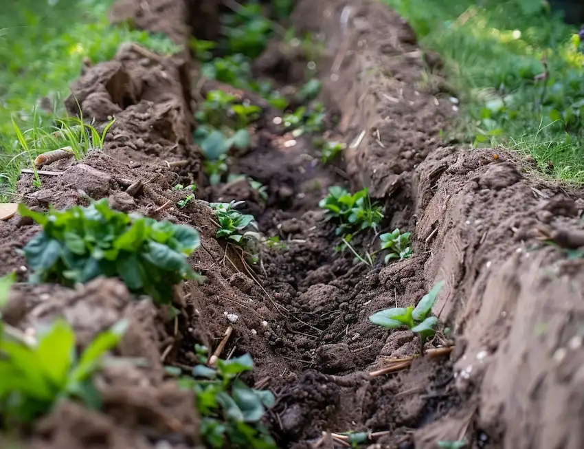 - Preparazione della trincea: Scava una trincea lunga circa 30-60 centimetri e larga altrettanto.