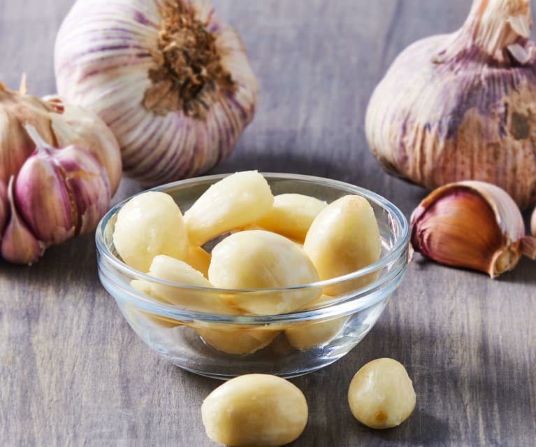Passo 2: Trattamento con Aglio Preparate una soluzione di acqua e aglio. L’aglio contiene una grande quantità di ormone auxina, che aiuta a stimolare la crescita delle piante. Aggiungete due spicchi d’aglio tritati a due litri d’acqua e lasciate in infusione per 30 minuti.