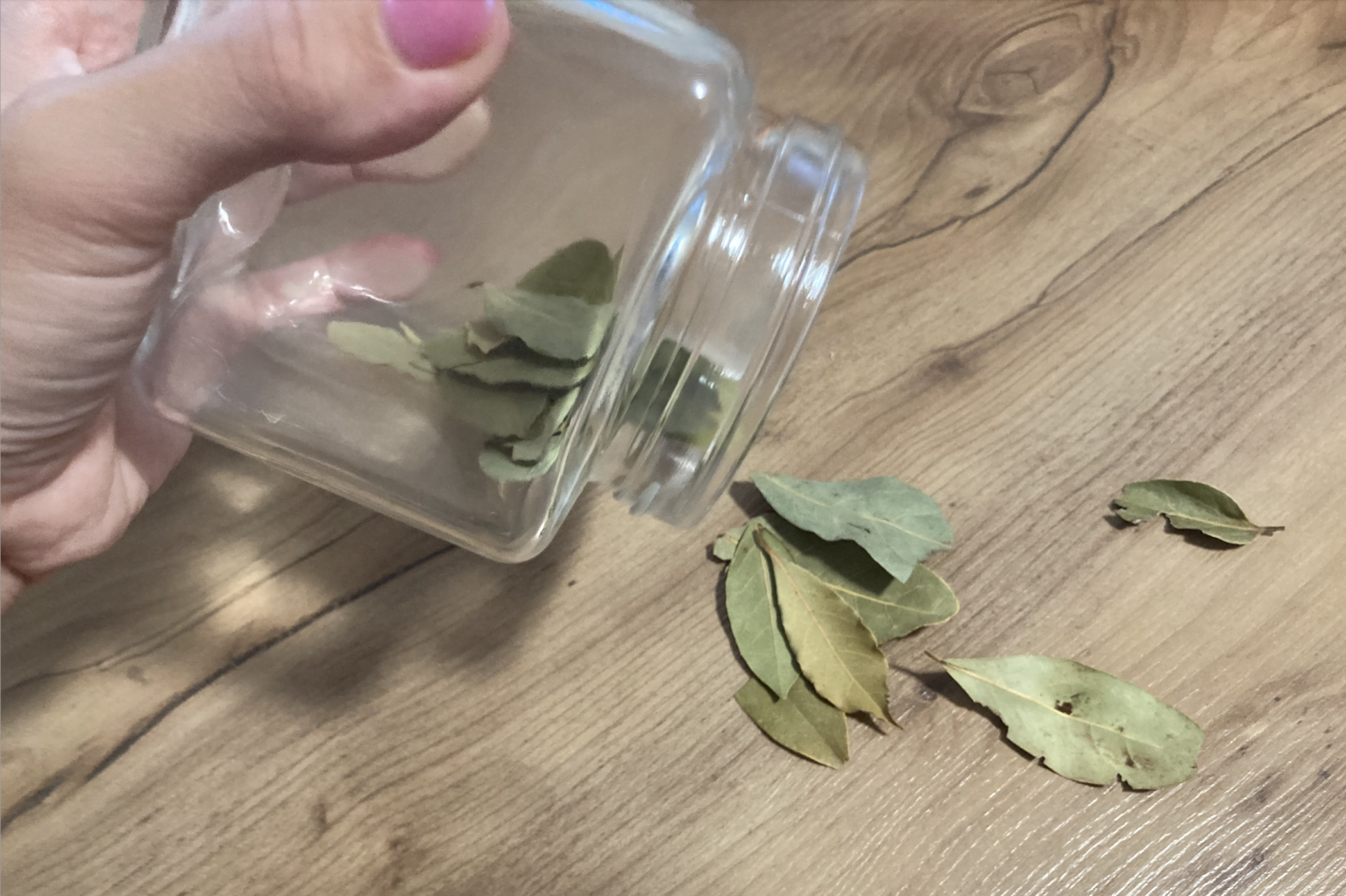 - Versate un litro di acqua calda sulle foglie di alloro nel barattolo.