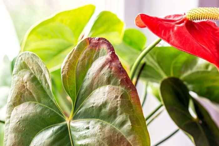 Esposizione al sole diretto: Benché l’Anthurium necessiti di luce solare per prosperare, la luce diretta del sole può danneggiare le foglie, causando la comparsa di macchie marroni e la diminuzione della fioritura.