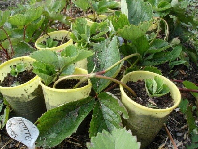 Rimuovi steli e germogli in eccesso dalle piante propagate. Riempi piccoli vasi con una miscela di terra e compost. Pianta i germogli della pianta senza strappare i corrieri dalla pianta madre.