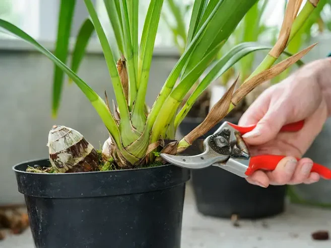 Gestione dei parassiti e delle malattie: Controlla regolarmente la presenza di parassiti comuni delle orchidee come cocciniglie, cocciniglie e afidi. Usa un sapone insetticida delicato per affrontare le infestazioni. Presta attenzione ai segni di infezioni fungine o batteriche, come foglie annerite o pseudobulbi in decomposizione, e applica tempestivamente trattamenti adeguati.