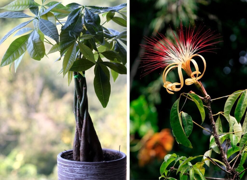 7. Pachira d’Acqua (Albero dei Soldi Cinese): Promotore di armonia e felicità secondo il Feng Shui, richiede annaffiature frequenti e un’alta umidità dell’aria.