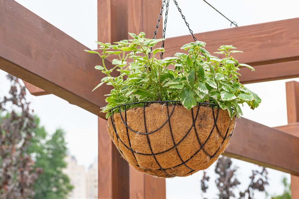 Plectranthus madagascariensis in a suspended garden, in the Natalka park of Kiev, Ukraine