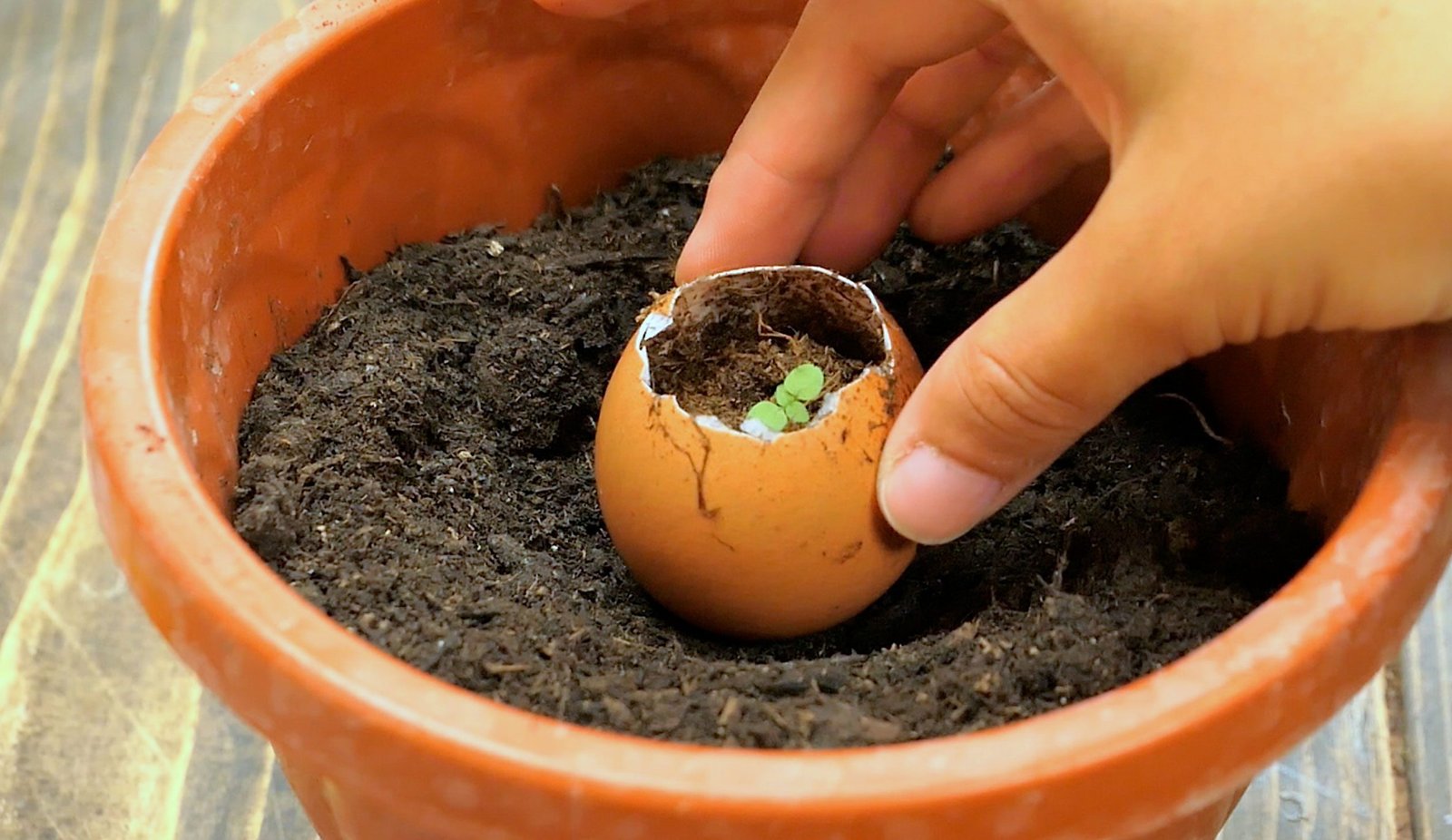 Passo 3: Semina dei semi Riempi il guscio d’uovo con terra di qualità. Usando una pinzetta, seppellisci delicatamente i semi di pomodoro nel terreno umido. Assicurati di inumidire il terreno appena sufficientemente. Poi, metti il guscio d’uovo in un contenitore di plastica per uova per creare un microclima favorevole alla crescita delle piante.
